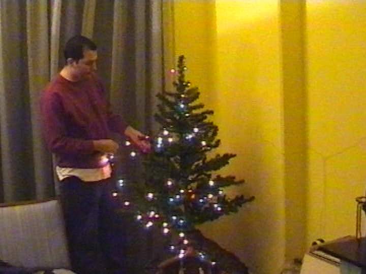 show up before time, so she had to prepare the Christmas tree just in case . This year dad had to help . Everything was ready except for a